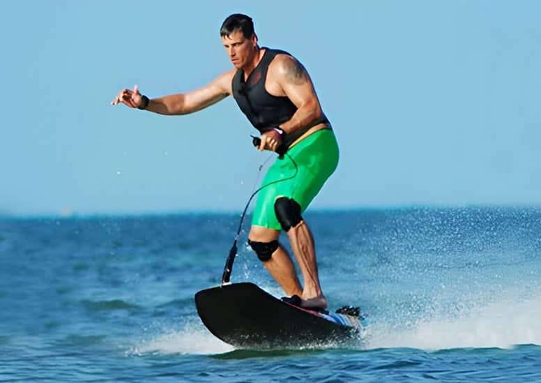 engine or electric motor. You stand and ride like surfing —